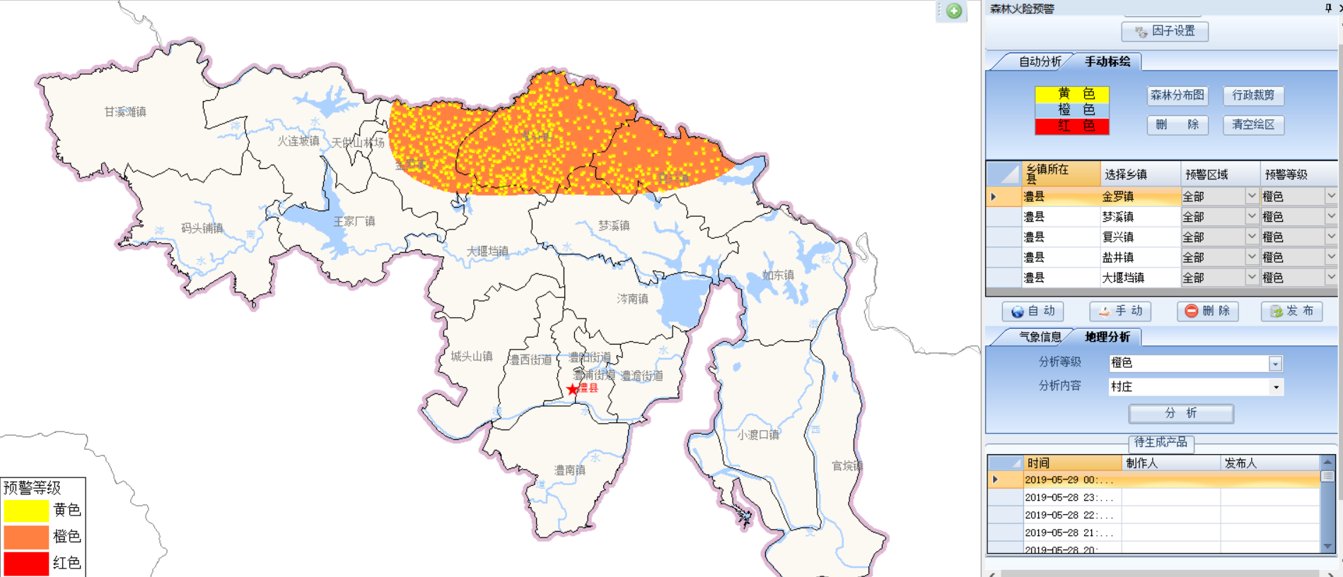 澧县智慧专业气象服务平台基于大数据、云平台、GIS分析技术、专业气象服务技术,面向各行业用户对气象服务实际需求而研发的商业化运营平台,包括采集、监控、制作、服务四大功能系统。其中采集系统是后台自动运行的系统,可实现对基础气象数据的实时采集,以CIMISS系统采集包括全国国家站、澧县自动站、分钟降水、分钟温风湿压、地面要素、高空要素、全国城镇报、澧县城镇报、雷达图、土壤墒情、地面要素、云图、闪电定位仪、历史资料、危险报(重要天气报)等数据,气象内网采集省气象台精细化网格预报产品(5公里*5公里)、气象预警信号等文件数据;监控系统是后台自动运行的系统,实现对气象要素、雷达、重要天气、雷电、农情、农业病虫害、灾害性天气的全天候数据监控;制作系统是业务人员使用的系统,实现对应急、水利、地灾、农业、林业、环境、内涝、交通、旅游、电力、雷电、保险等专业服务产品的分析制作。服务系统是专业用户使用的综合平台,包括数据服务、网站服务、微信公众号及微信小程序服务等,应急、水利、地灾、农业、林业、环保等专业客户可通过上述方式获取服务数据及服务产品。